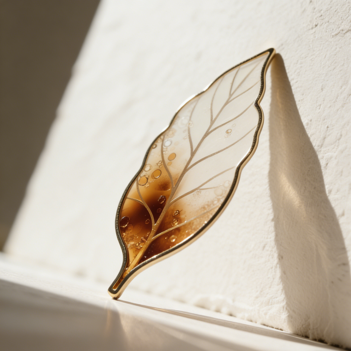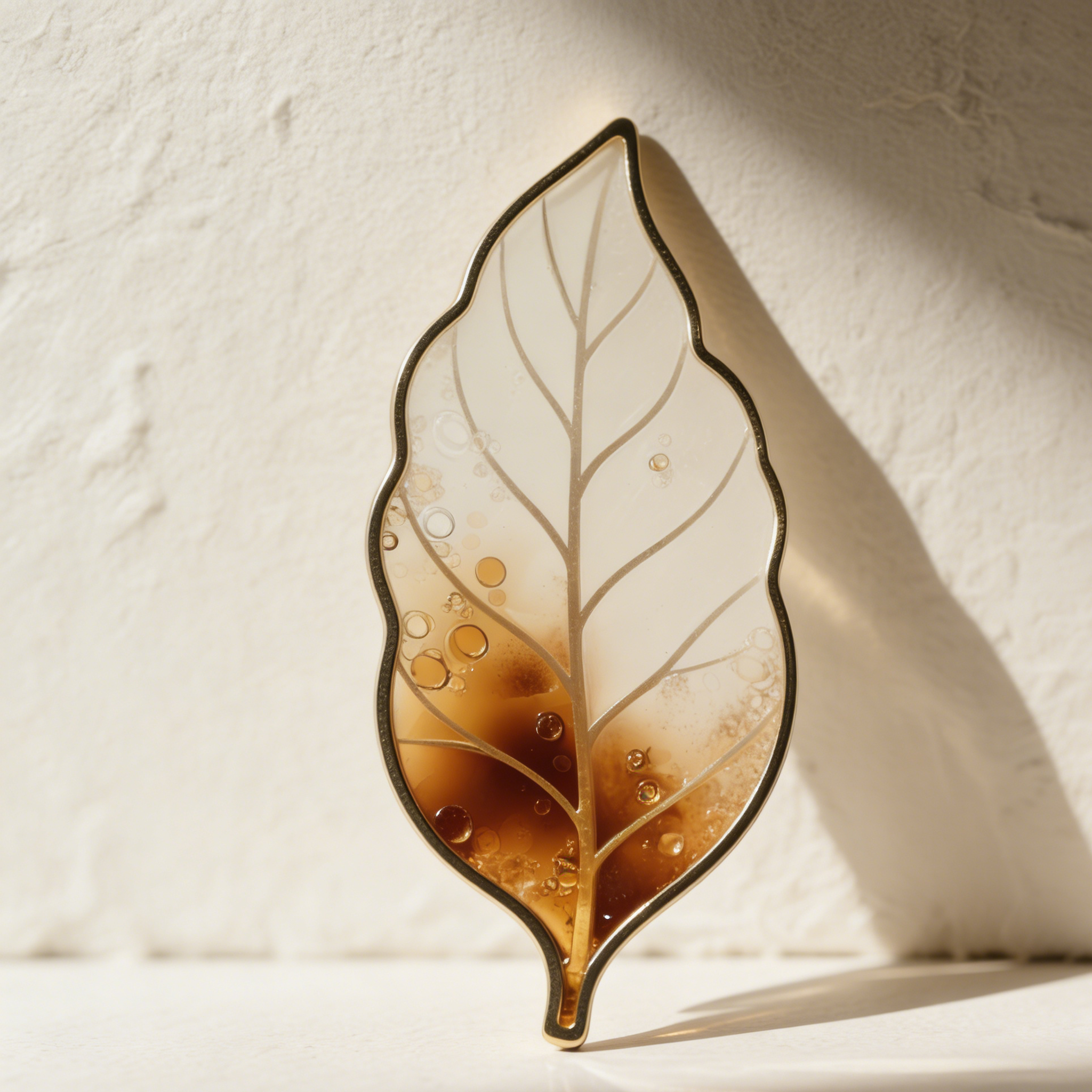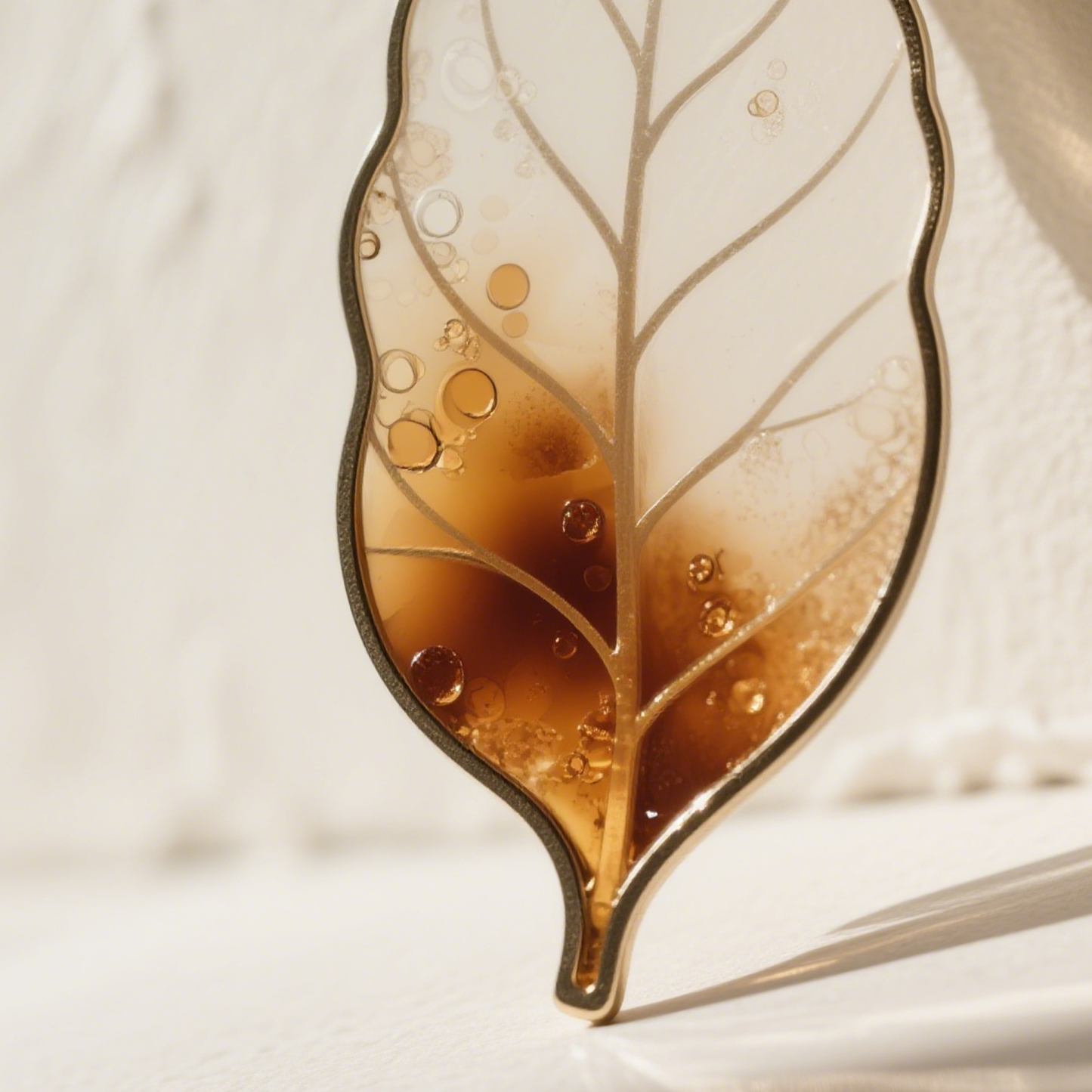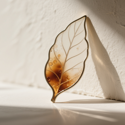 Zakładka do książki w kształcie liścia z bursztynem